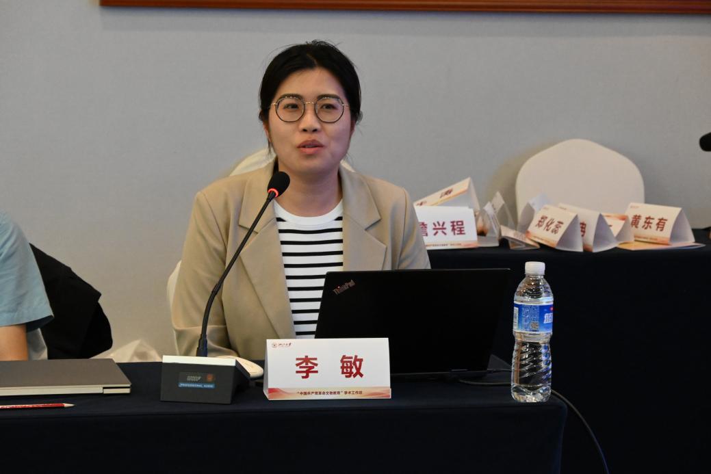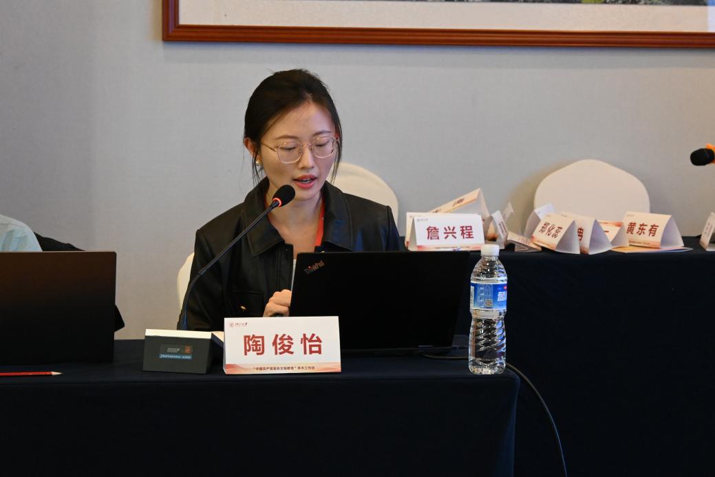 浙江大学马克思主义学院陶俊怡老师在发言中探讨了“中国共产党革命文物教育现状研究”,她分享了新时代以来中国共产党革命文物教育的经验总结,包括强化革命文物资源的教育功能,加强革命文物教育的效能转化,推动革命文物教育现代化发展。