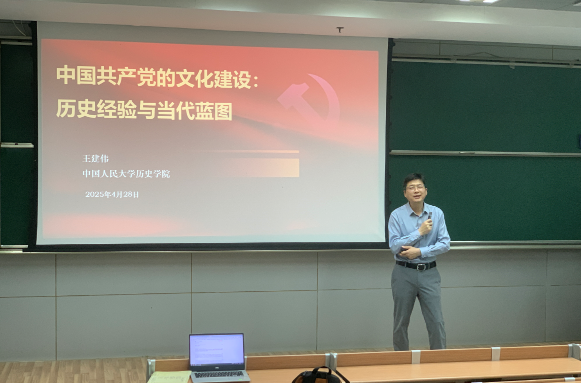王建伟教授指出,文化是一个国家和民族的灵魂的重要表征,与国运和民族的兴衰深度关联,新时代文化强国建设本质上是中国共产党百年精神谱系的当代表达,他强调在新时代上继续坚守党的文化领导权,挖掘中国共产党早期文化建设的历史经验,从而为当代的社会主义文化强国建设提供借鉴。讲座结束后,同学们就自己的思考与王建伟教授展开热烈交流,同学们纷纷表示将以此次讲座为契机,从历史经验中汲取智慧,以文化自信铸就民族复兴的精神内核。