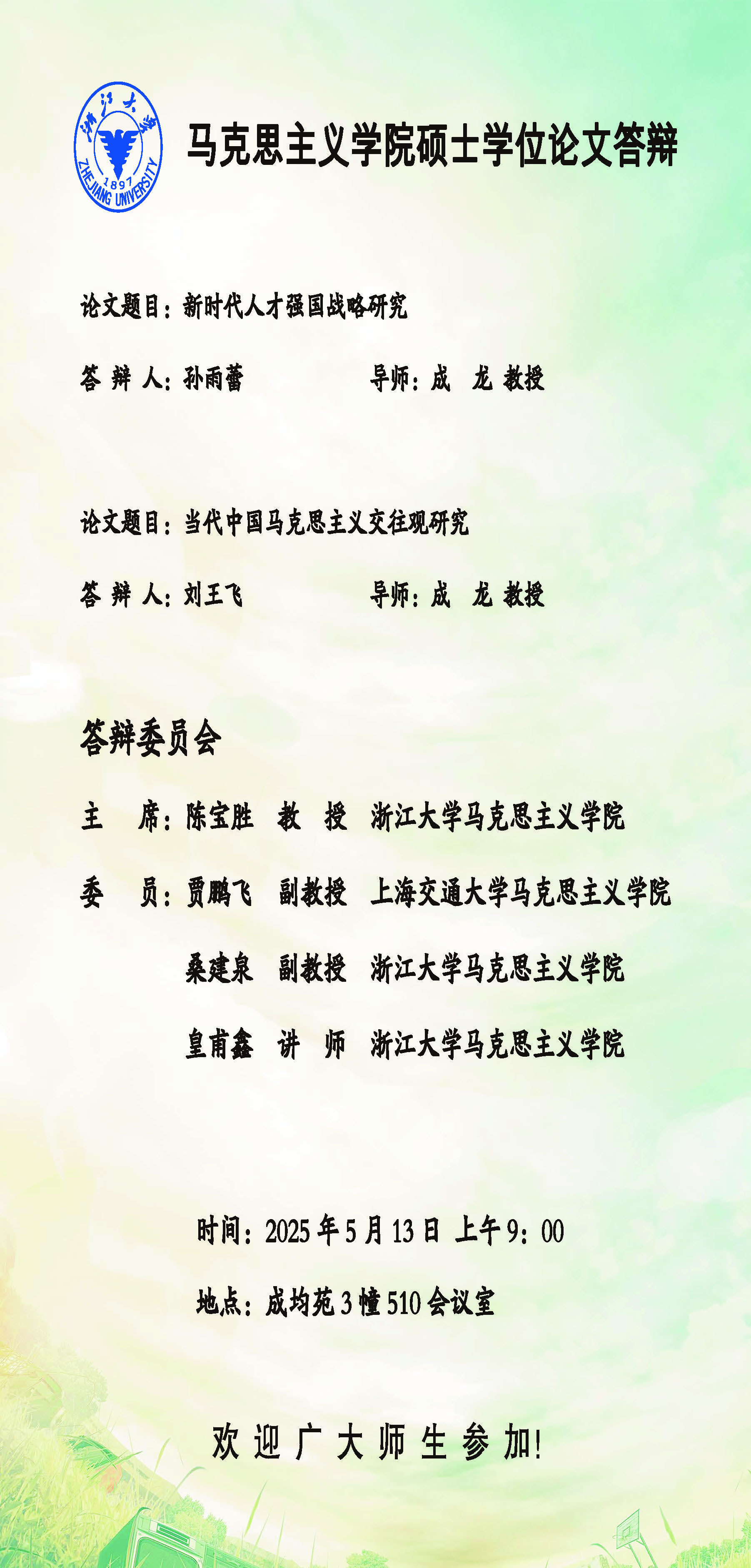 2025年第二季度硕士学位论文答辩通知(二)