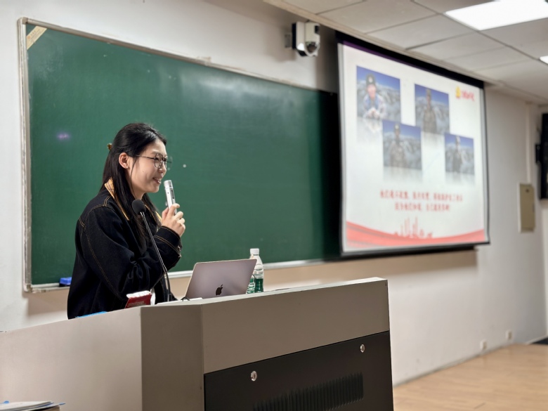 讲座伊始,沈艺以“清澈的爱,只为中国”为引,通过陈祥榕烈士及其所在部队在中印边境冲突中的英勇事迹,向学生还原了边防军人用生命捍卫国家主权的壮烈场景。她以“战士日记”“战场家书”等细节为切入点,再现了军人“宁可向前十步死,绝不后退半步生”的赤诚誓言,强调“英雄精神是青年成长的灯塔,是民族复兴的脊梁”。