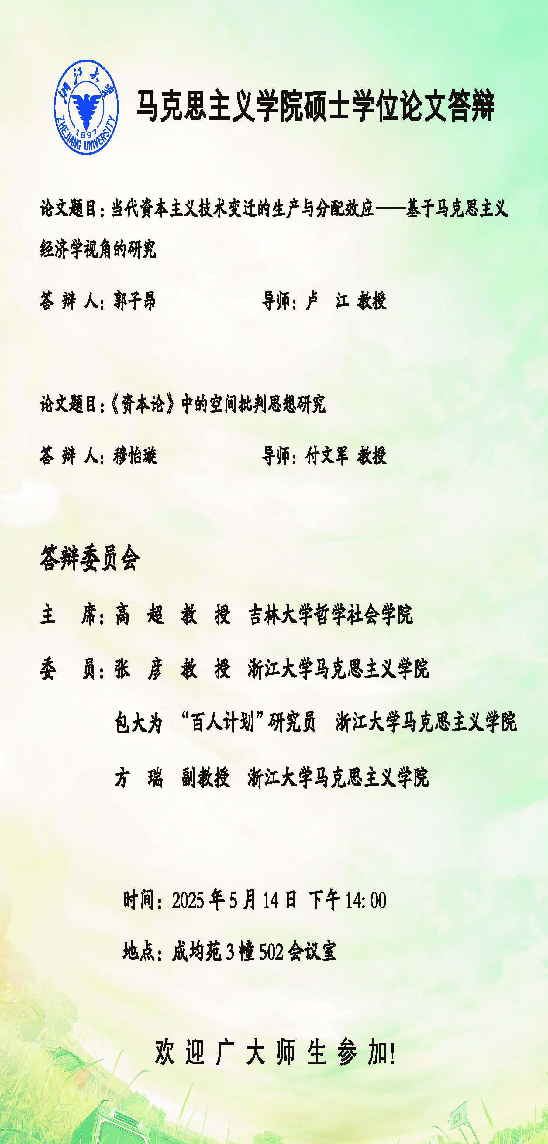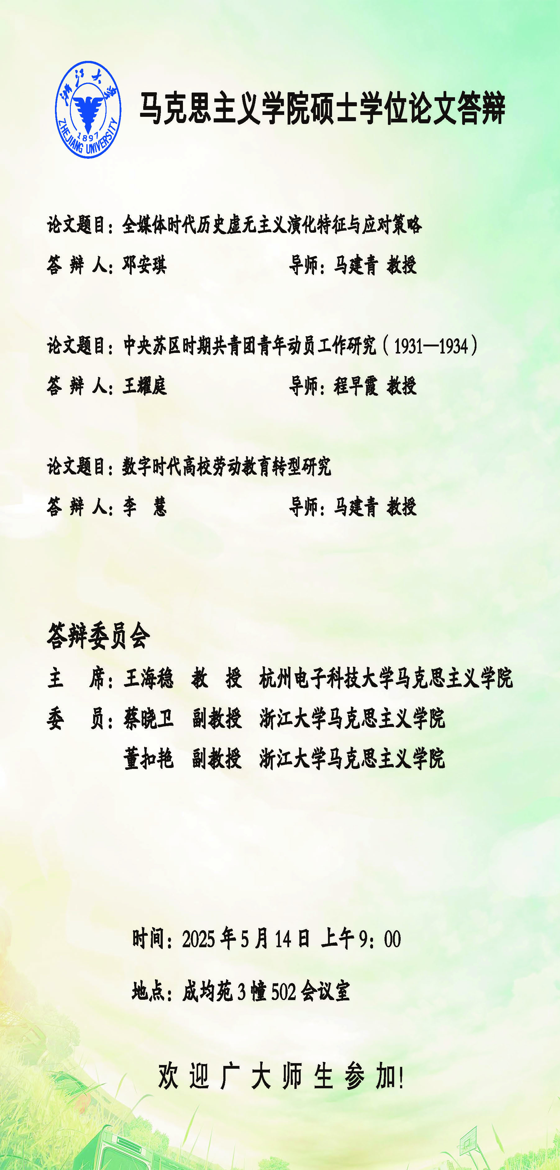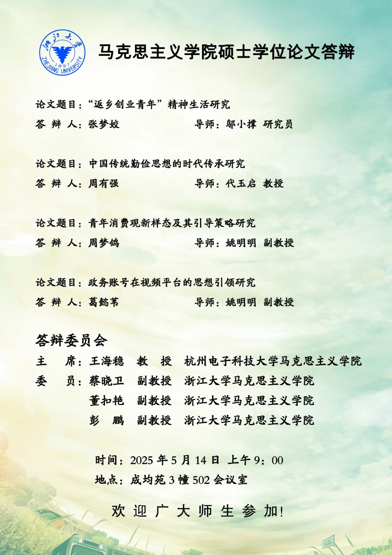 2025年第二季度硕士学位论文答辩通知(三)