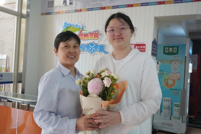 在丹阳园区,当同学们将一捧鲜花递到宿管阿姨手中时,阿姨脸上绽放出了惊喜又灿烂的笑容。“今年是儿子第一年在外地上大学,不在身边,没想到我还有机会在母亲节收到这么大一捧鲜花,我太高兴了。”阿姨说道,“你们就像我的孩子一样,希望你们也都能够健健康康、快快乐乐得过好每一天。”