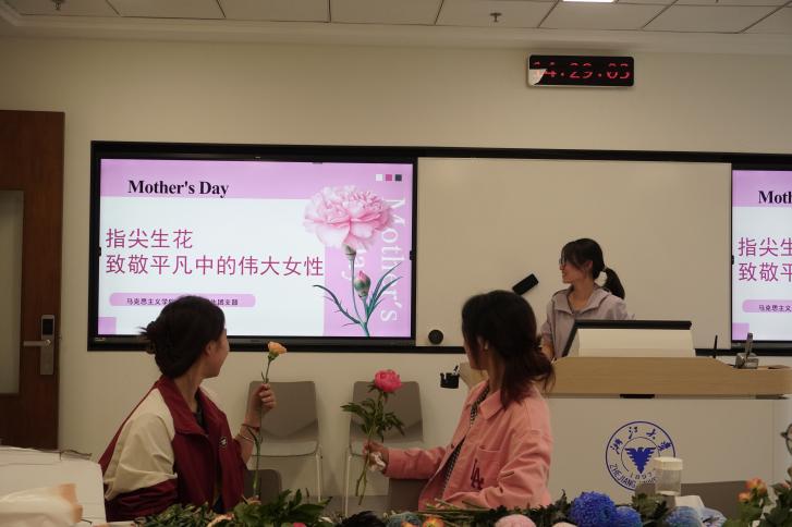 正值母亲节即将到来之际,浙江大学马克思主义学院2023级本科生团支部于2025年5月10日开展了“指尖生花——致敬平凡中的伟大女性”插花、赠花活动。通过亲手制作花束赠予后勤女性的方式,引导同学们用实际行动传递爱与关怀,同时在花束的创作过程中感受美的浸润。