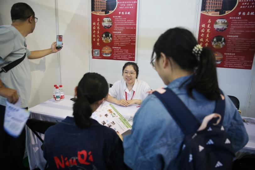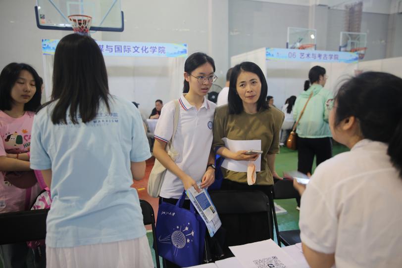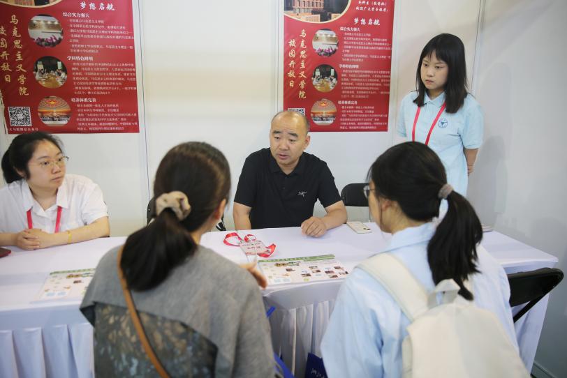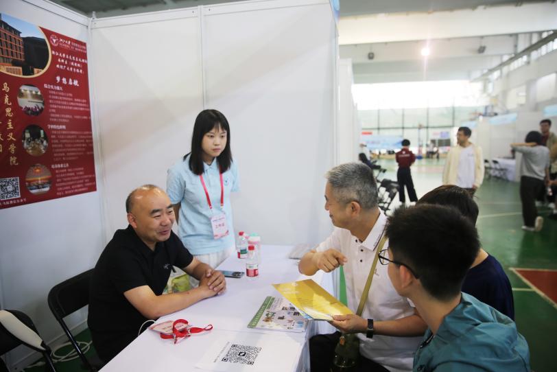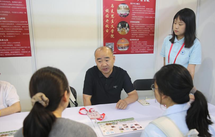 学院在风雨操场一楼设立了现场咨询专区。马克思主义学院副院长代玉启教授在咨询现场,为广大考生及家长答疑解惑,全方面展示了学院的综合实力、学科特色和培养方案等情况,帮助广大考生及家长深入了解马院的专业特色。