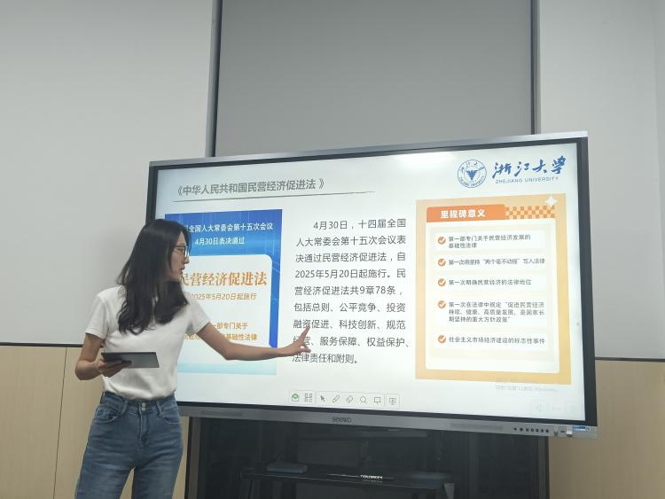 第三环节,支部宣传委员邵暄茹同志以“推动民营企业向‘新’发力向‘质’而行——深入学习贯彻习近平总书记在民营企业座谈会上重要讲话精神”为题,向党员同志们深入讲解了习近平总书记在2025年民营企业座谈会上的重要讲话,提出总书记强调的 “两个毫不动摇”“三个没有变”,给广大民营企业吃下了 “定心丸”,让民营企业家们倍感振奋、充满信心。并就民营经济发展现状、现存困境、未来发展的机遇和路径提出几点思考。