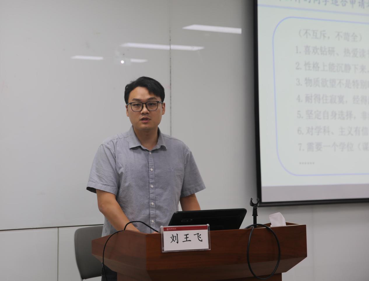 马克思主义中国化研究专业2022级硕士生刘王飞以“在博士研究生申请考核中的若干问题”为题,结合自身申博经历,从目标设定、材料准备、院校选择等方面展开分享。他强调了长期学术积累的重要性,包括广泛阅读经典著作、深入钻研前沿问题,同时要有准备、有规划、聚焦性的联系导师,并保持良好心态,做好自我调节。刘王飞同学的分享高屋建瓴,为同学们提供了宏观的申博策略。