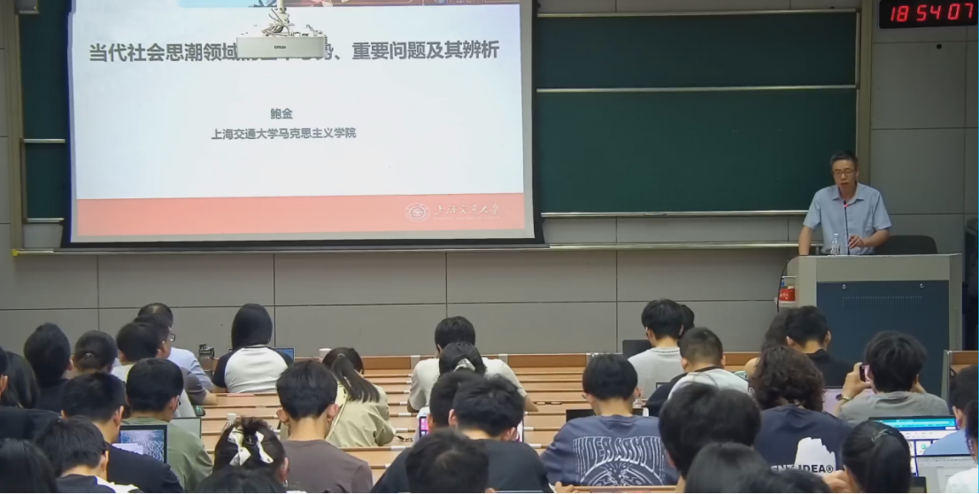 鲍金教授的讲授在理论思辨中富有激情,为学生们编织了一个知识与智慧交织的殿堂。在讲授过程中,鲍金教授结合自己多年以来的丰富研究成果,用学术讲政治,将研究成果的精髓嵌入教学之中,以丰富的学术触觉深入挖掘教材的精神内涵,以马克思主义的理论魅力感染学生。本次讲座有深度、有温度,不仅能够让学生了解社会思潮的最新动态,还有助于引导学生学会运用马克思主义的立场、观点和方法辨析各类社会思潮的社会根源及历史局限。