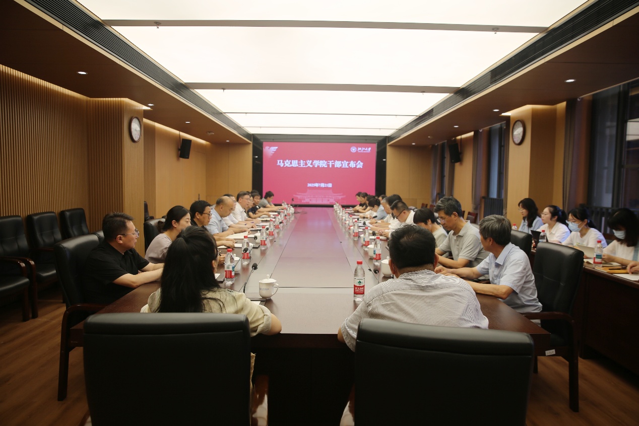 2025年7月21日下午,浙江大学马克思主义学院召开干部宣布会。浙江大学党委副书记朱世强出席会议并讲话。党委组织部副部长单珏慧主持会议并代表学校宣布干部任免决定。
