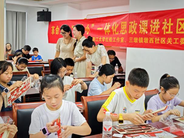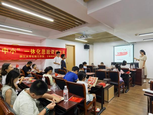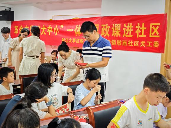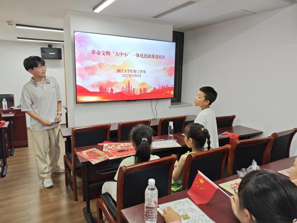 为充分激活革命文物的育人价值,搭建“大中小”全学段群体共学红色文化的社区平台,9月6日上午,浙江大学马克思主义学院“红船工作室”联合三墩镇墩西社区,在紫金西苑15幢2单元社区会议室,精心举办革命文物“大中小”一体化思政课进社区活动。此次活动吸引社区30多