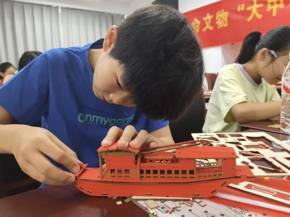 实践环节中,“红船工作室”宣讲团为每位小朋友准备了一套“红船模型3D立体拼图”,邀请家长与孩子组队“共建红船”。