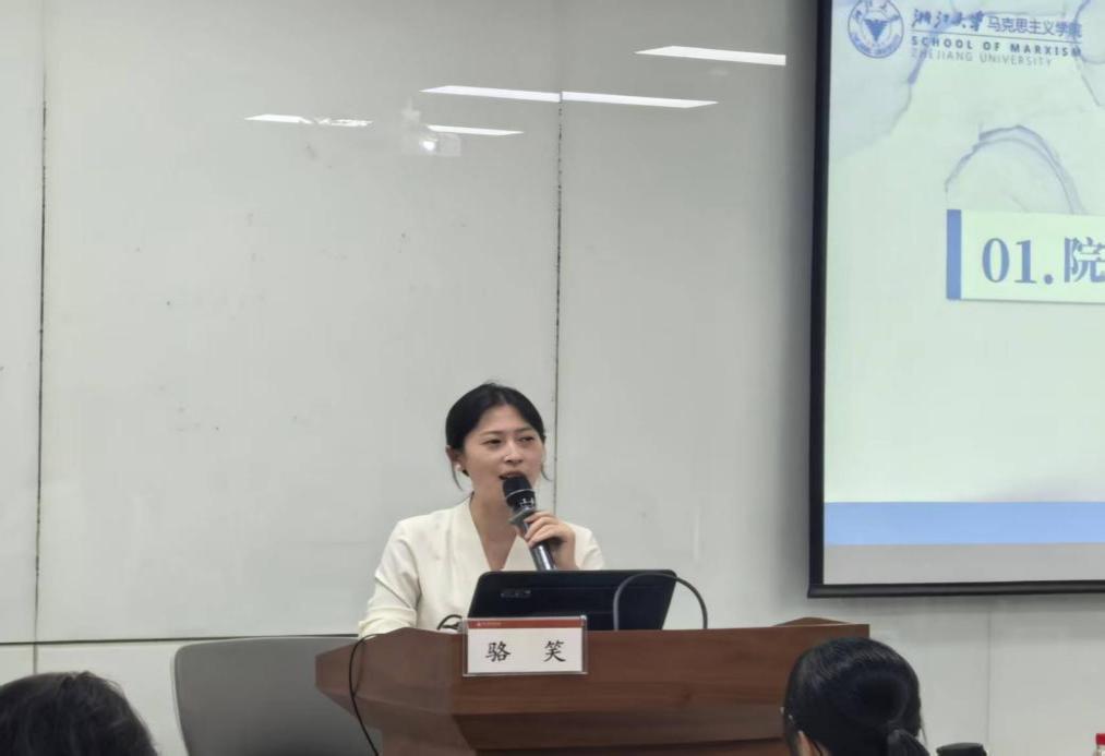 9月21日下午,马克思主义学院2025级硕士研究生第一次班会在成均苑3幢521教室举行。浙江大学马克思主义学院党委副书记、纪委书记骆笑,教学秘书潘颖超,专职辅导员陈书凝,德育导师奚佳梦及2025级全体硕士研究生共同参会。会议由陈书凝老师主持。
