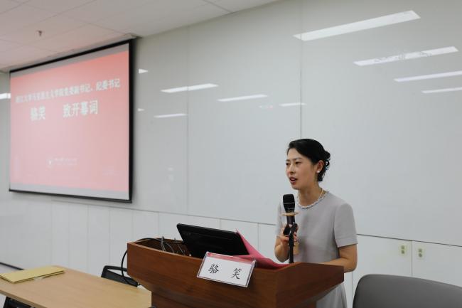 会议伊始,与会人员全体起立,齐唱国歌与校歌。随后由马克思主义学院党委副书记骆笑老师致开幕辞。骆笑老师充分肯定了第二十届研博会所取得的工作成绩,并对同学们提出三点期望:一是以信仰为灯,做马克思主义的坚定信仰者;二是以专业为刃,做学术创新的勇敢探索者;三是以担当为尺,做社会价值的积极践行者。老师勉励大家要深刻领悟时代赋予的使命与责任,努力将个人的理想抱负与国家和民族的发展大局紧密相连,以实际行动践行服务国家、服务人民的宗旨。