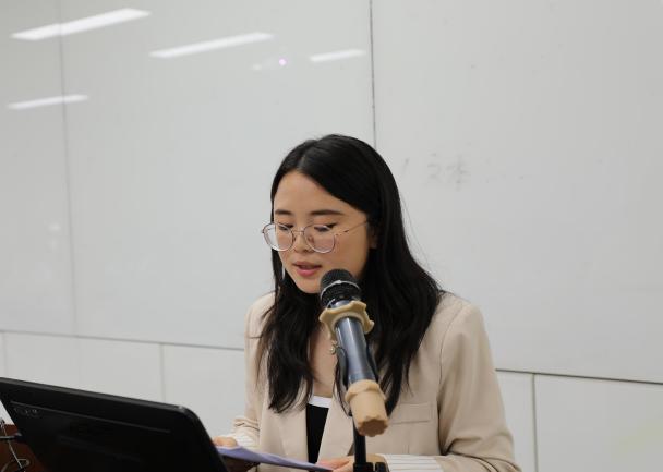 第二阶段,第二十届研博会主席团成员李婉茹向大会作《浙江大学马克思主义学院第二十届研博会工作报告(草案)》。报告从“深化组织建设,夯实服务基”、“强化思想铸魂,凝聚信仰力量”、“聚焦学术领航,打造研创高地”、“拓展实践场景,搭建多元平台”四个方面回顾了过去一年马院研博会所取得的工作成绩。
