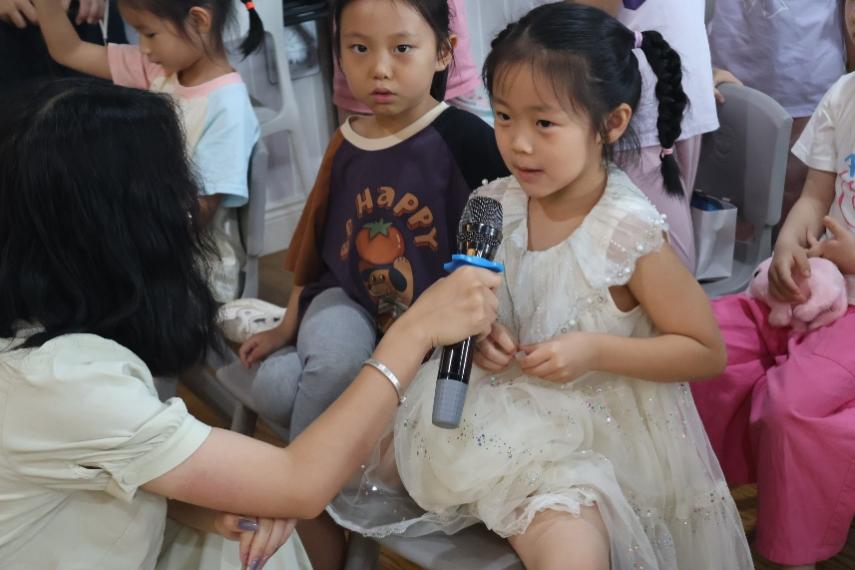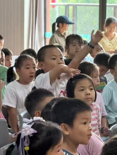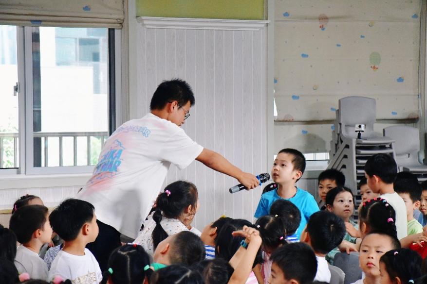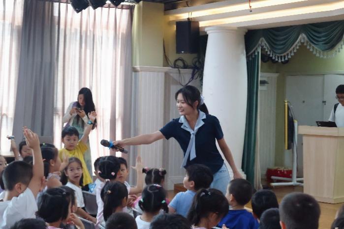 宣讲员吕欣林鼓励小朋友发言表达感想