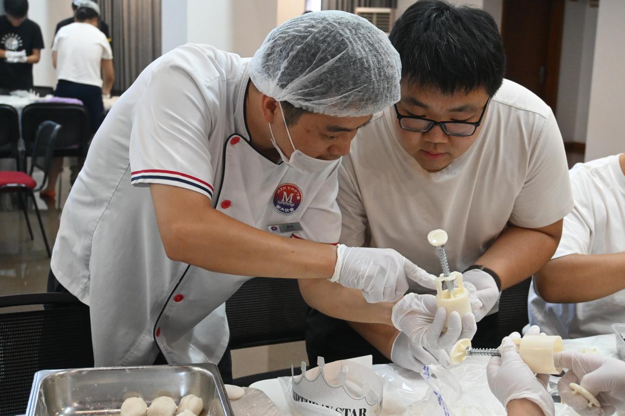 活动在欢声笑语中拉开帷幕。在澄月食堂专业师傅讲解冰皮揉制、馅料包裹、模具使用方法后,师生亲手制作冰皮月饼,成品样式多样,体验了传统美食的制作乐趣。大家交流制作技巧,分享家乡的中秋习俗,现场洋溢着浓厚的节日气氛。