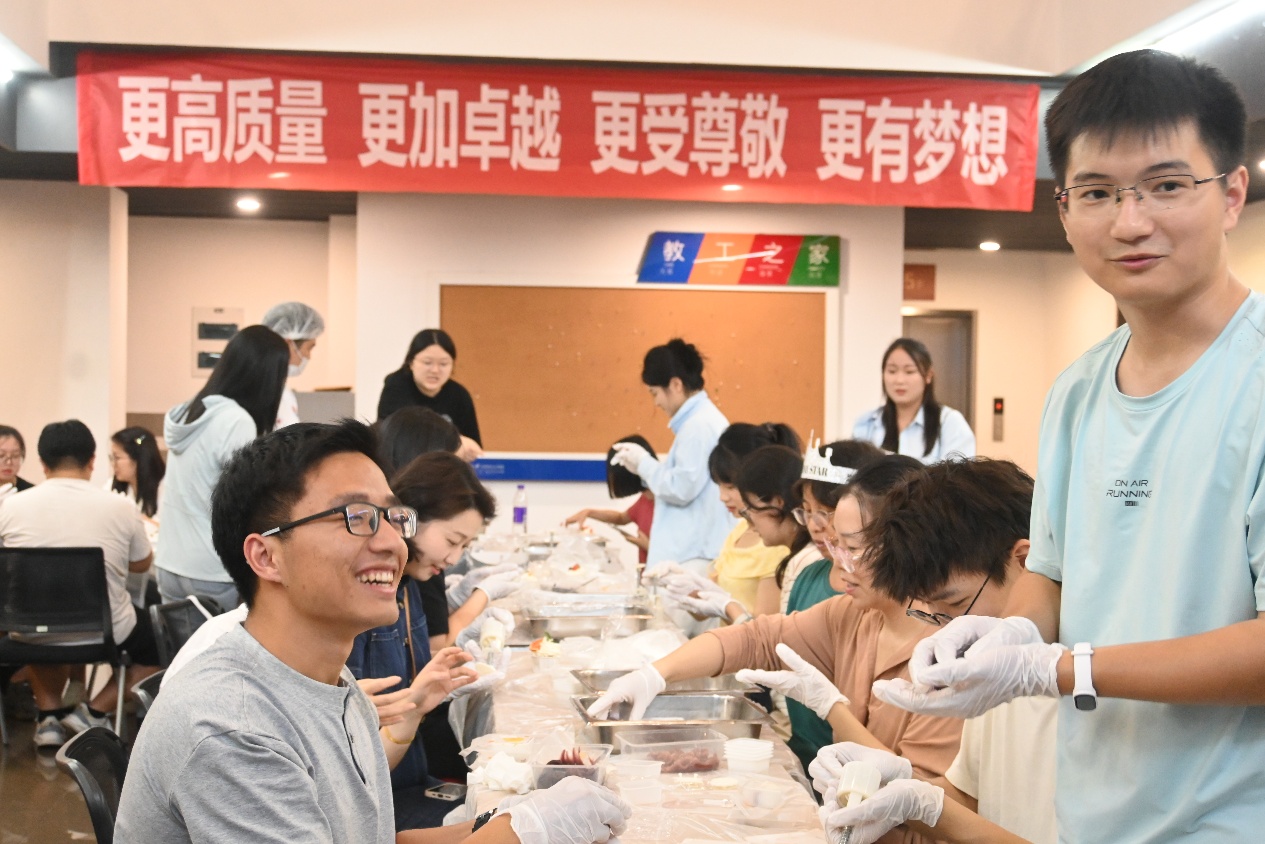 为迎接国庆节、中秋节的来临,增强师生的归属感与凝聚力,2025年9月26日,马克思主义学院于成均苑2幢5楼大厅举办双节同庆手工月饼活动暨第三季度师生生日会活动,共享团圆时光。本次活动由学院工会、团委联合主办。