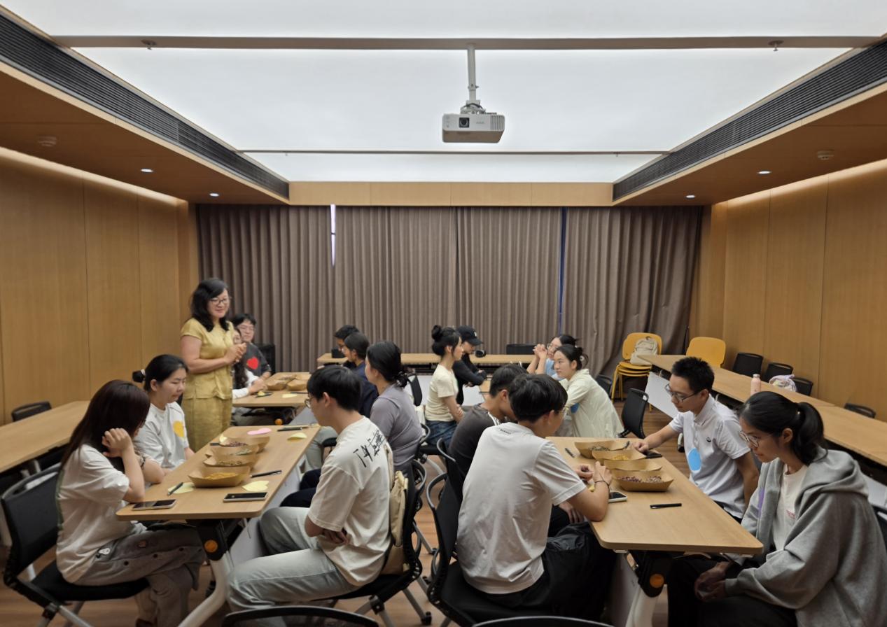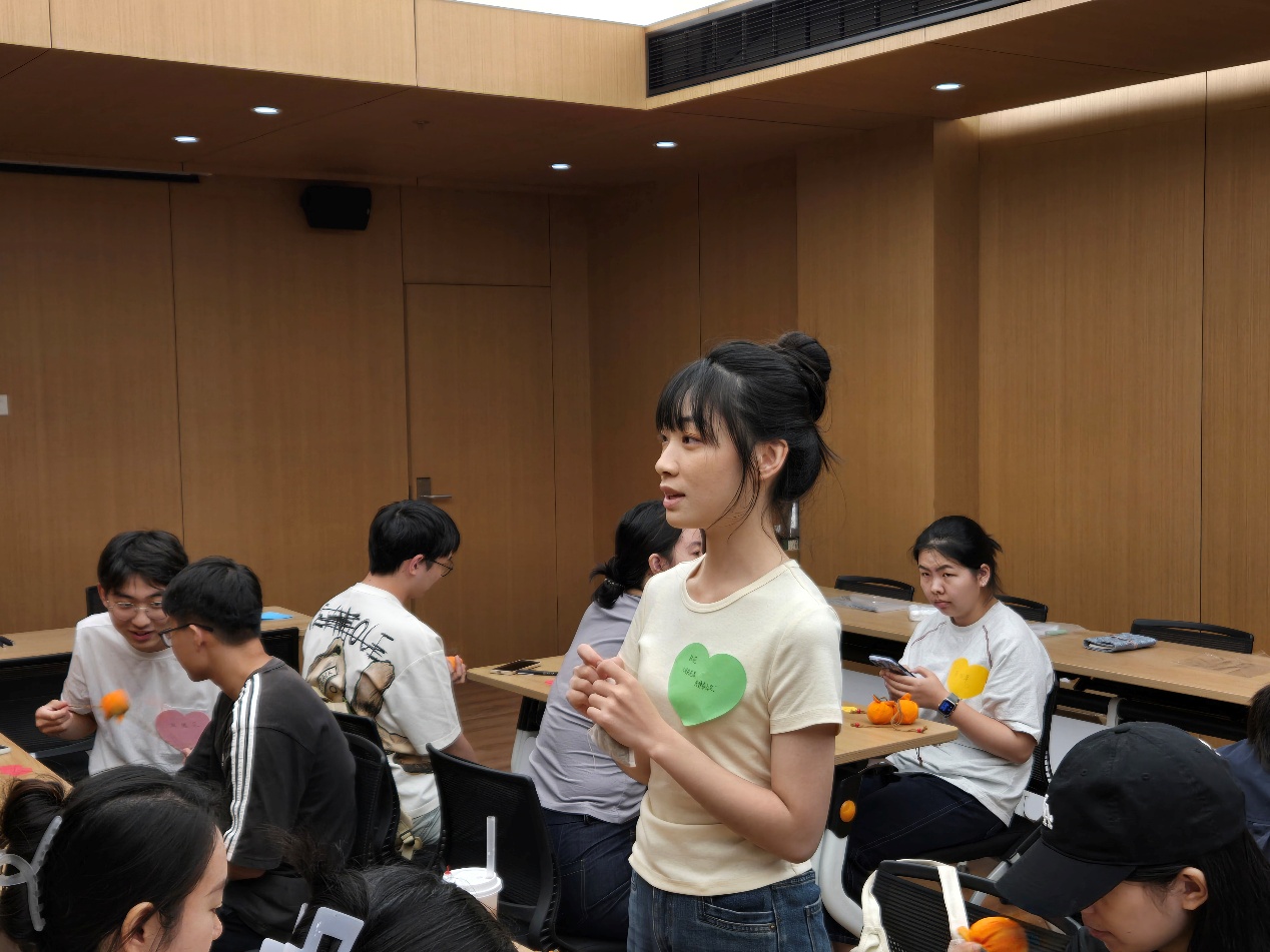 香囊制作完成后,“香语心途”分享圈温情开启。孙大雁老师邀请同学们轮流举起自己的“小柿子”,讲述名字背后的故事,一个个充满巧思的名字,或是寄托美好期许,或是映射内心状态,让这场手作体验不仅有温度,更有深度。