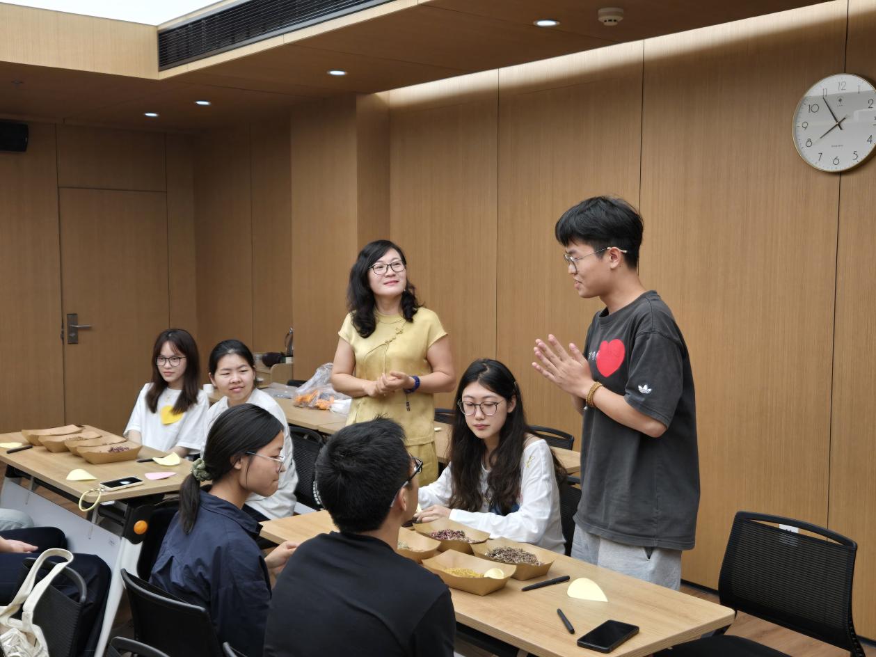 随后 “香气记忆盲选” 环节,桂花、桃花等香料被分装在不同盒子中,同学们闭眼闻嗅,凭直觉挑选最触动自己的气味,在分享气味联想的过程中,同学们的心灵悄然靠近,为后续互动埋下温暖伏笔。