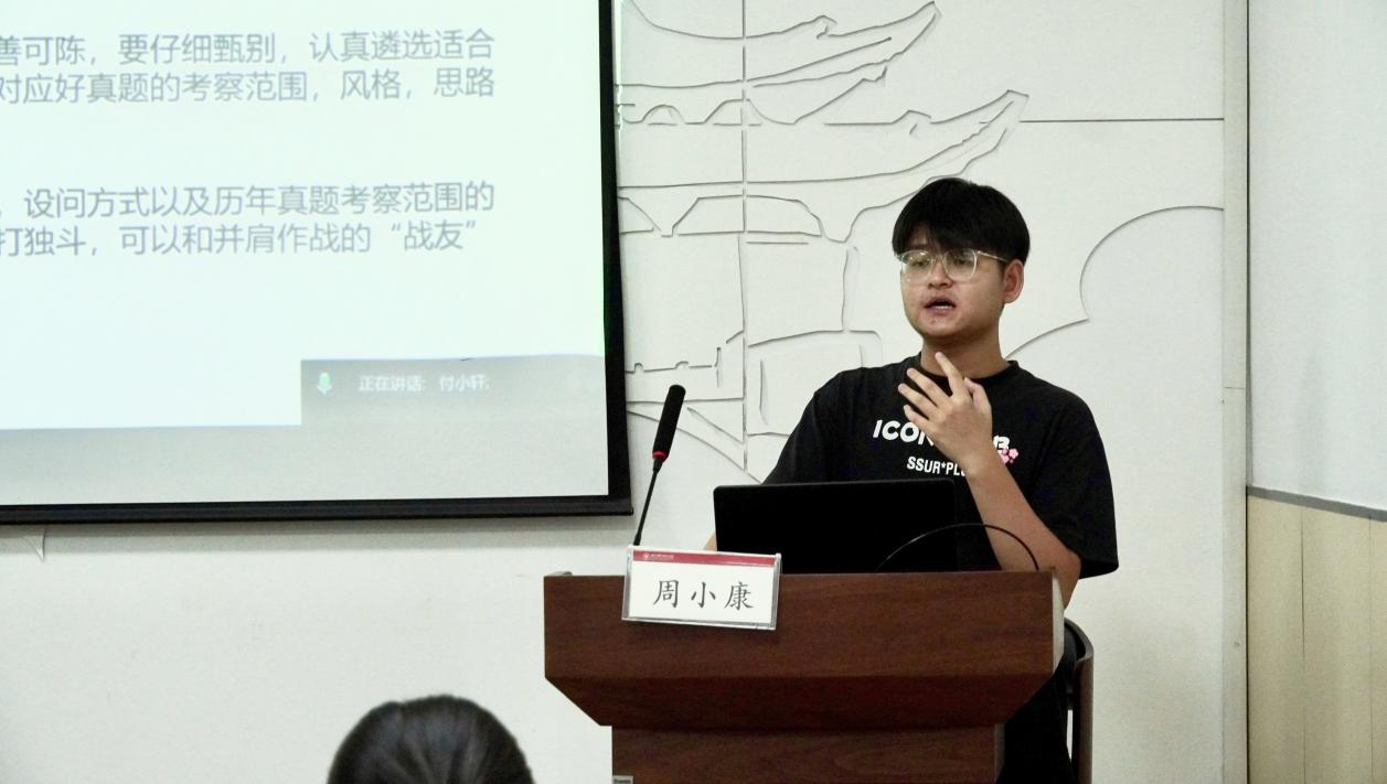 接下来,周小康学长也强调了考研择校时需要重点关注的方面,为非应届同学指明了努力方向学长提前搜集了同学们的各类问题,现场逐一细致解答,提出许多实用建议。在心态调整方面,他认为在路上不必焦虑,而应坚定目标,积极暗示,用强健的体魄塑造坚强的意志。