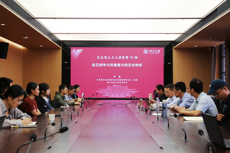 10月17日,浙江大学马克思主义大讲堂第99期在成均苑3幢502会议室顺利举行。中共浙江省委党校党史党建教研部主任、浙江省党史学会副会长邱巍教授受邀作“抗日战争与民族复兴的历史转折”主题讲座。讲座由浙江大学马克思主义学院副教授、中共党史党建研究所副所长张立程老师主持。学院30余名师生参加。