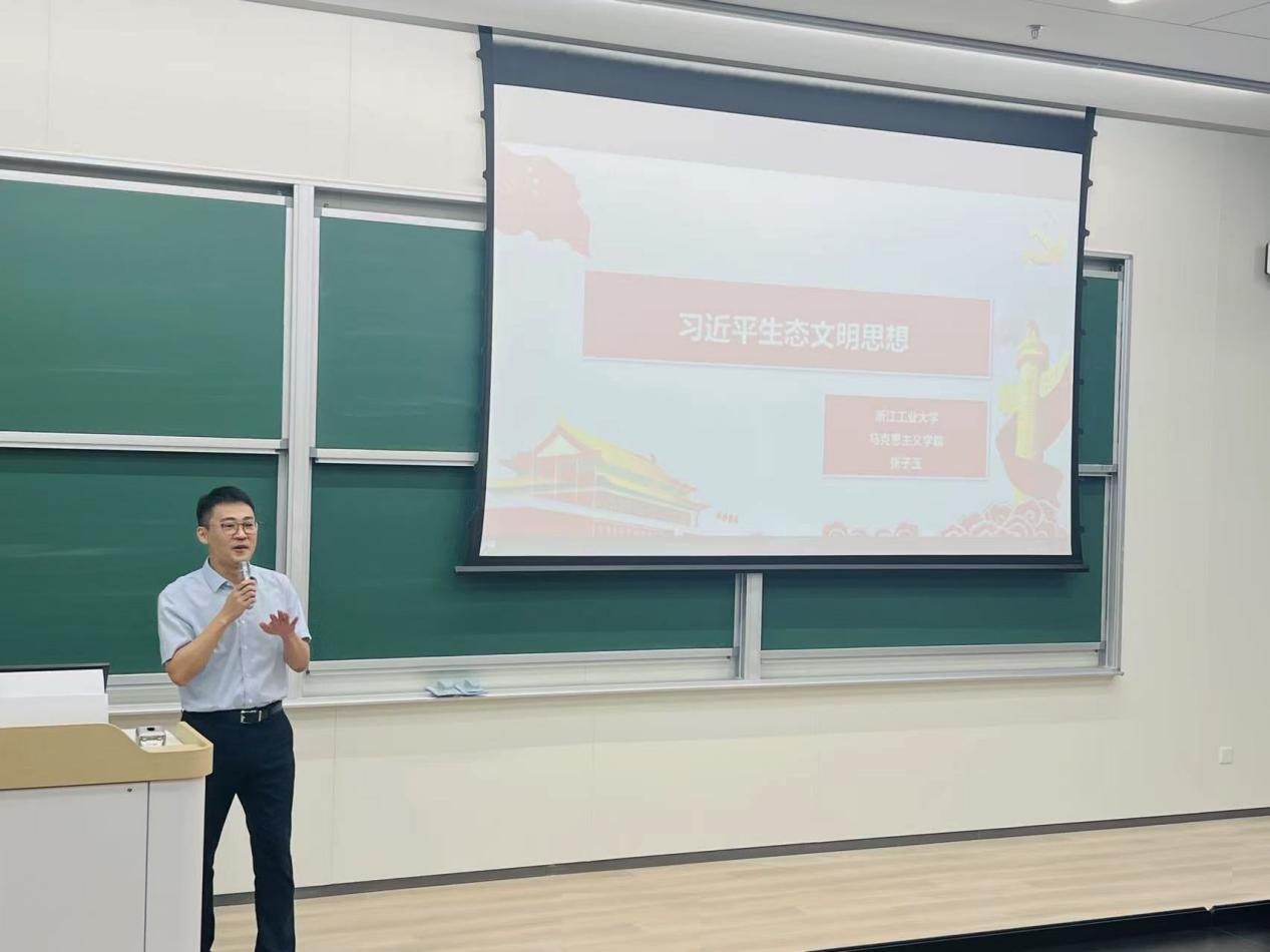 20251017日晚,浙江工业大学马克思主义学院学术副院长张子玉副教授,在西区2号教学楼102教室为《中国马克思主义与当代》课程的150余名同学作题为“习近平生态文明思想”的专题分享。