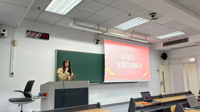 在交流研讨环节,各支部党员结合自身科研实践与学习体会,围绕“弘扬优良作风”“大学精神与自我革命”两个方面展开了深入讨论。多名党员代表发言,从不同角度阐述了自己对“自我革命”“作风建设”以及“大学精神”等关键概念的理解。