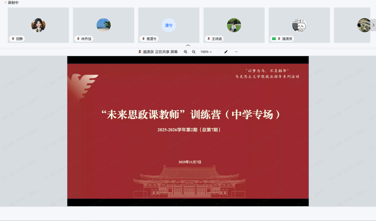 为满足同学们的职业规划需要,马克思主义学院有幸邀请到了三位优秀院友——上海音乐学院虹口区北虹高级中学思政教师王诗涵学姐、杭州第四中学吴山校区政治教师韩珺珺学姐、杭州学军中学西溪校区政治教师陈旭升学长,于2025117开展“未来思政课教师”训练营(中学专场)。