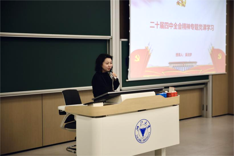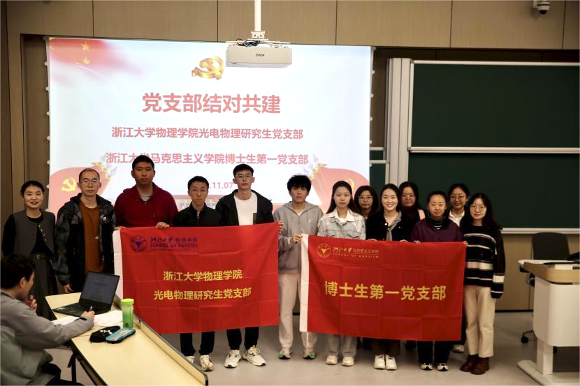 为深入学习贯彻中国共产党第二十届中央委员会第四次全体会议精神,推动支部共建、学科互融,2025年11月7日下午,浙江大学马克思主义学院与物理学院联合举办“二十届四中全会专题党课学习暨两院支部联学共建活动”。马克思主义学院思想政治教育研究所教师奚佳梦、马克思主义学院辅导员陈书凝、物理学院辅导员田涵之出席活动,马克思主义学院与物理学院的学生代表共70人参加。本次活动由马克思主义学院学生会王宇月主持。