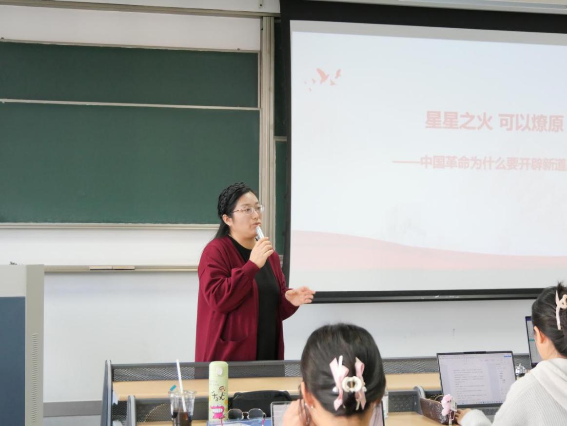 20251113日上午和下午,浙江理工大学马克思主义学院副院长王艳娟老师以《星星之火,可以燎原——中国革命为什么要开辟新道路》为题为《中国近代史纲要》课堂两百余名求是学子讲述了中国共产党在19271937年间的艰难探索与伟大转折。