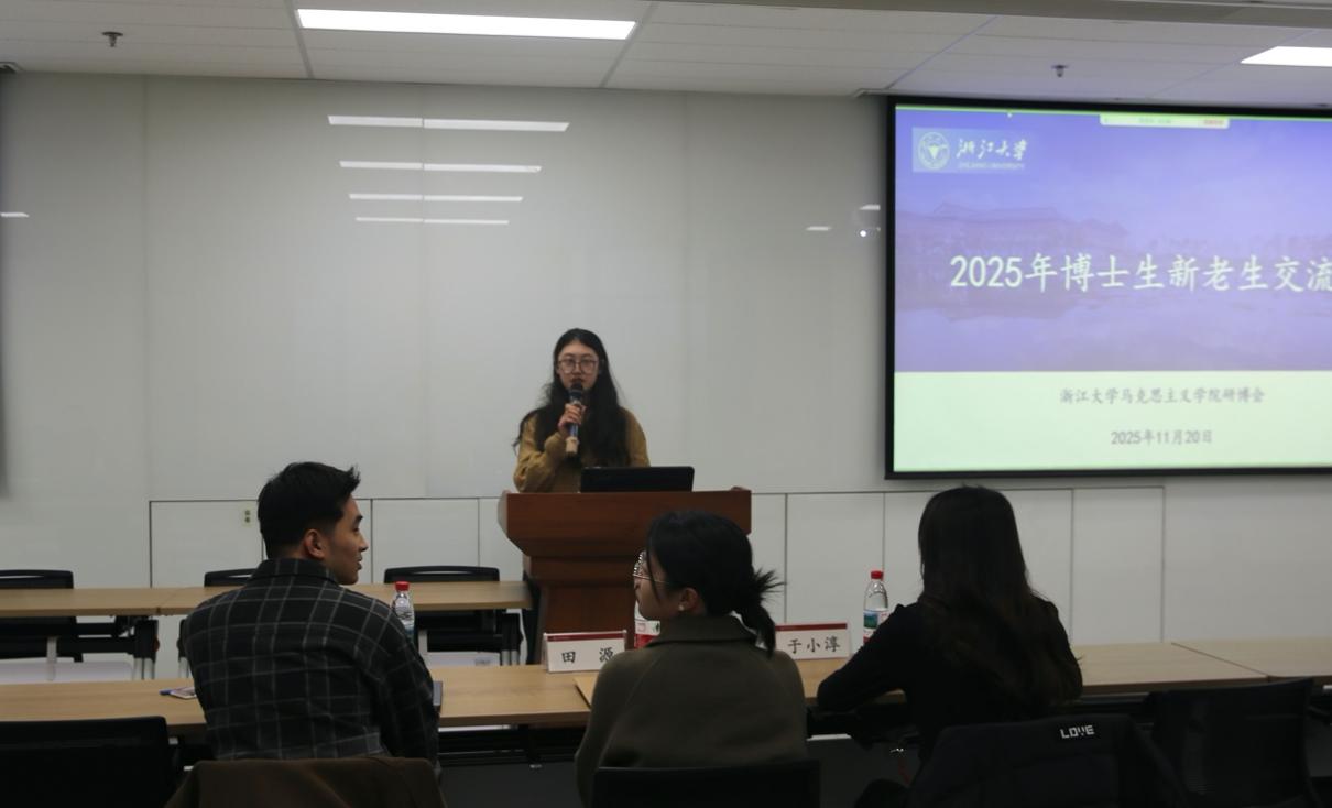 2025年11月20日下午,马克思主义学院2025级博士新老生交流会在成均苑3幢523教室顺利举行。本次交流会由2025级硕士研究生田艾静主持,2022级博士研究生田源、2024级博士研究生张乾、于小淳应邀分享经验,2025级博士研究生参加会议。