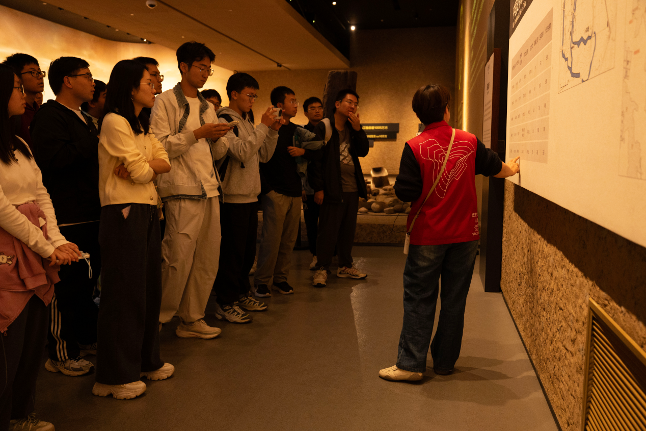 2025年11月1日下午,王君老师带领《思想道德与法治》班级百余名学生来到良渚博物院,开展了一场课堂理论知识与五千年文明之间的跨时空对话,让同学们亲身领略、感受良渚先民顺应自然、构建城邦、传承礼制的文明历程,为德法课程中的文化自信与家国情怀教育注入鲜活实践养分。
