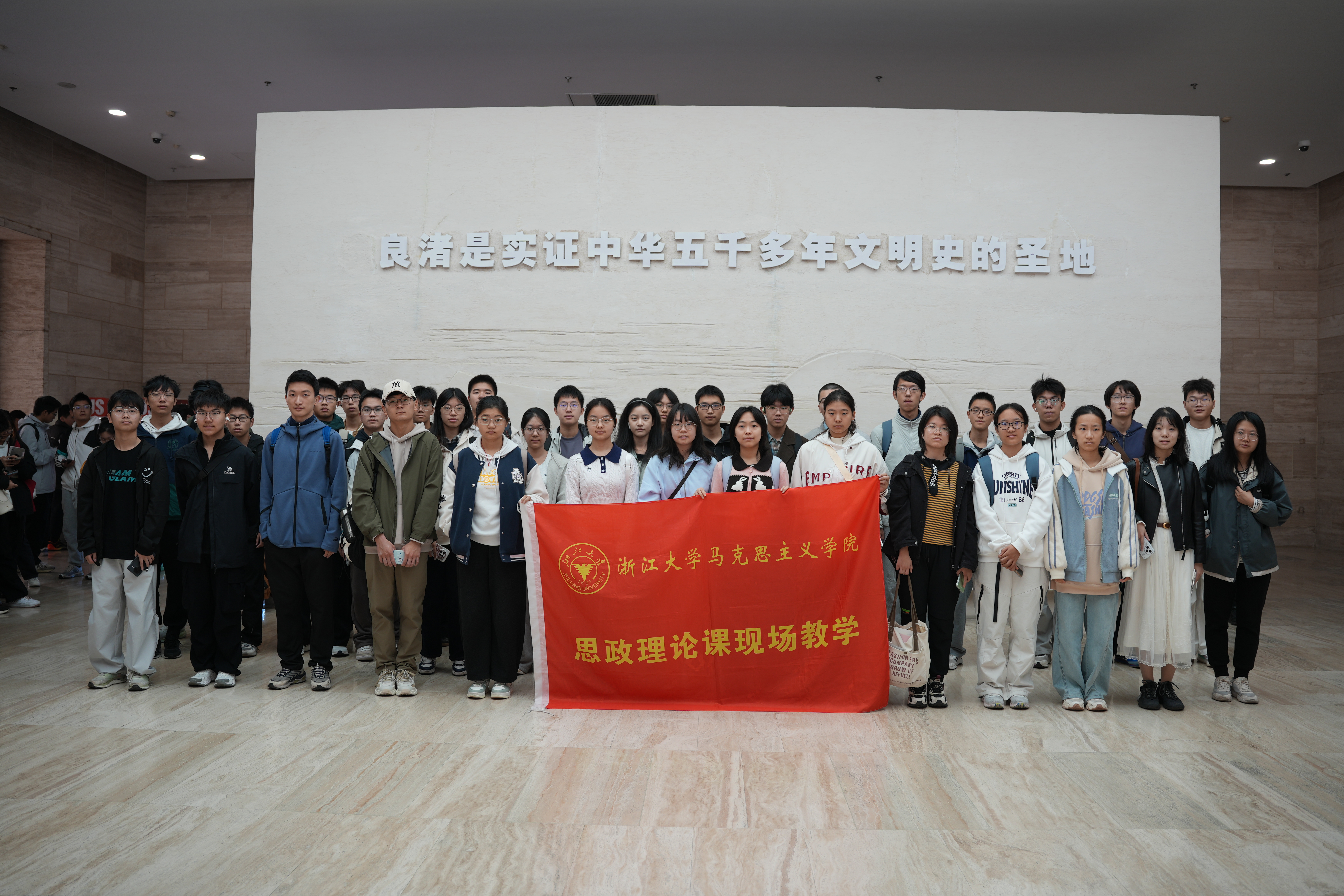 为深入学习贯彻习近平总书记关于中华文明探源工程的重要指示精神,推动学生在实践中增强文化自信、深化家国情怀,2025年11月15日上午,浙江大学靳思远老师“思想道德与法治”课堂周四3、4节,周四7、8节,周五1、2节,周五3、4节班级共277名师生赴良渚博物院参观,在跨越五千年的文明对话中上了一堂沉浸式的思政课,感受良渚古城的文明光芒与时代价值。