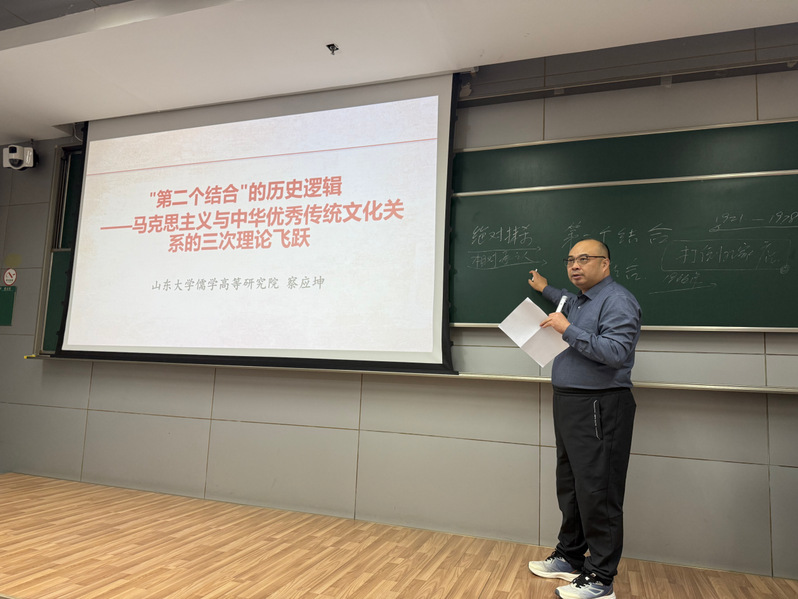 2025年12月11日上午,浙江大学“新时代中国特色社会主义理论与实践”课程专题讲座在紫金港校区西区第二教学楼103教室顺利举行。山东大学儒学高等研究院察应坤教授应邀主讲“‘第二个结合’的历史逻辑——马克思主义与中华优秀传统文化关系的三次理论飞跃”,140余名师生参加。