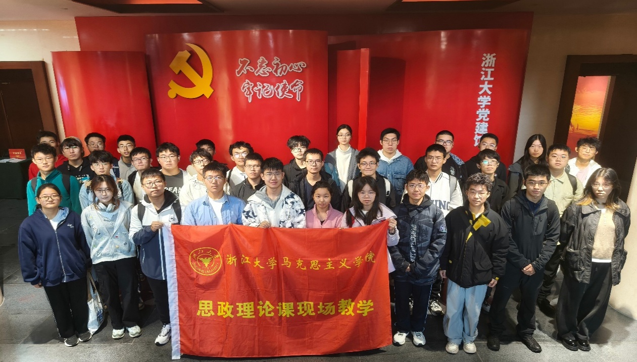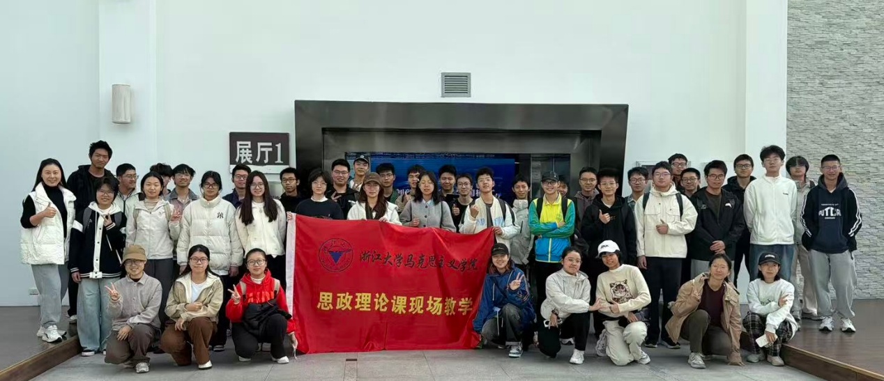 2025年11月10日,《思想道德与法治》课程周一上午班的84名同学,在刘凤仪老师与助教薛敏的带领下,分两组有序走进浙江大学党建馆与科技创新馆,开展了一场融合红色教育与科技体验的沉浸式现场教学。活动以场景化教学拓宽了思政课堂的边界,促成理论教学与实景感知的有机统一,让思政教育更具感染力与实效性。