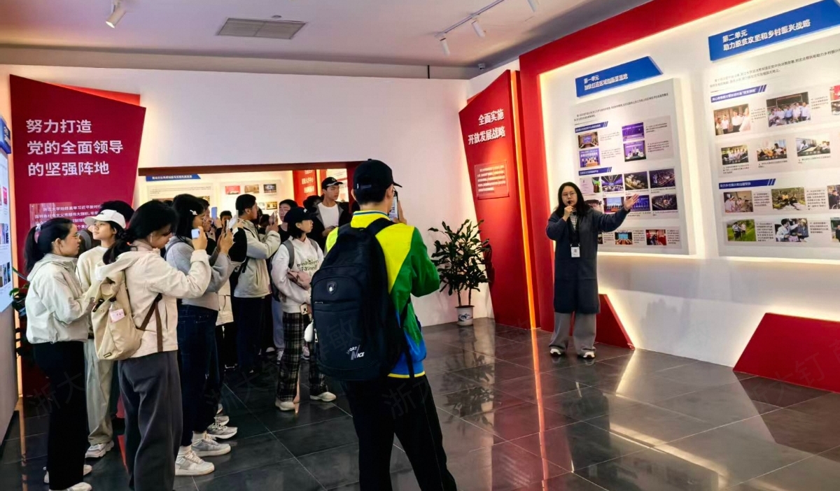 展区中陈列的一张张泛黄的老照片、一枚枚沉甸甸的荣誉奖章、一套套凝聚智慧的百廿求是丛书,生动再现了浙大师生在不同历史时期的责任担当。功勋墙上,两弹一星功勋人物、国家最高科学技术奖获得者等杰出校友的感人事迹,引发同学们强烈共鸣,让大家深刻体会到浙大人“以国家需要为己任”的家国情怀。
