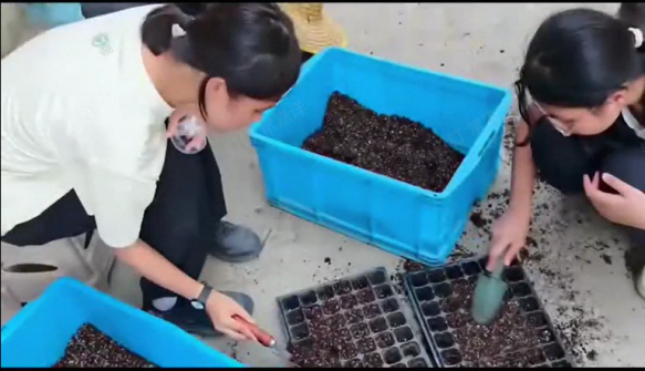 ·尽管起初对着锄头和种子两眼一抹黑,连“垄沟间距”都像外星语。但在学长组化身“田间导师”的倾情指导下,我们已然成为高手(bushi)。而且真正下田才知道“汗滴禾下土”不是诗,尤其是刚开课的时候,天气还很热,烈日烤得后背发烫,泥点子在裤腿上留下触目惊心的痕迹。当然我们的这些小情绪在某天蹲下身,发现埋下的萝卜籽竟顶出了嫩黄的小尖时就烟消云散了,还得感叹一句“生命在泥土里憋着大招呢。”——“求是躬耕”第1小组