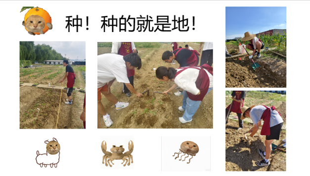 同学们还将这份收获的喜悦带进德法课堂,以丰富的形式展现一学期的实践成果。精心整理的现场照片,定格了从播种到丰收的每一个珍贵瞬间,有初次播种时的懵懂好奇,有除草施肥时的专注认真,也有此刻收获时的欢呼雀跃;制作精良的PPT,系统梳理了种植流程、劳动分工、遇到的问题及解决方法,将农耕实践与德法知识巧妙结合,阐述了对“责任担当”“团结协作”的深刻理解;简短的实践视频,以生动的画面还原了种植日常,让在场师生直观感受到劳动的艰辛与收获的喜悦。