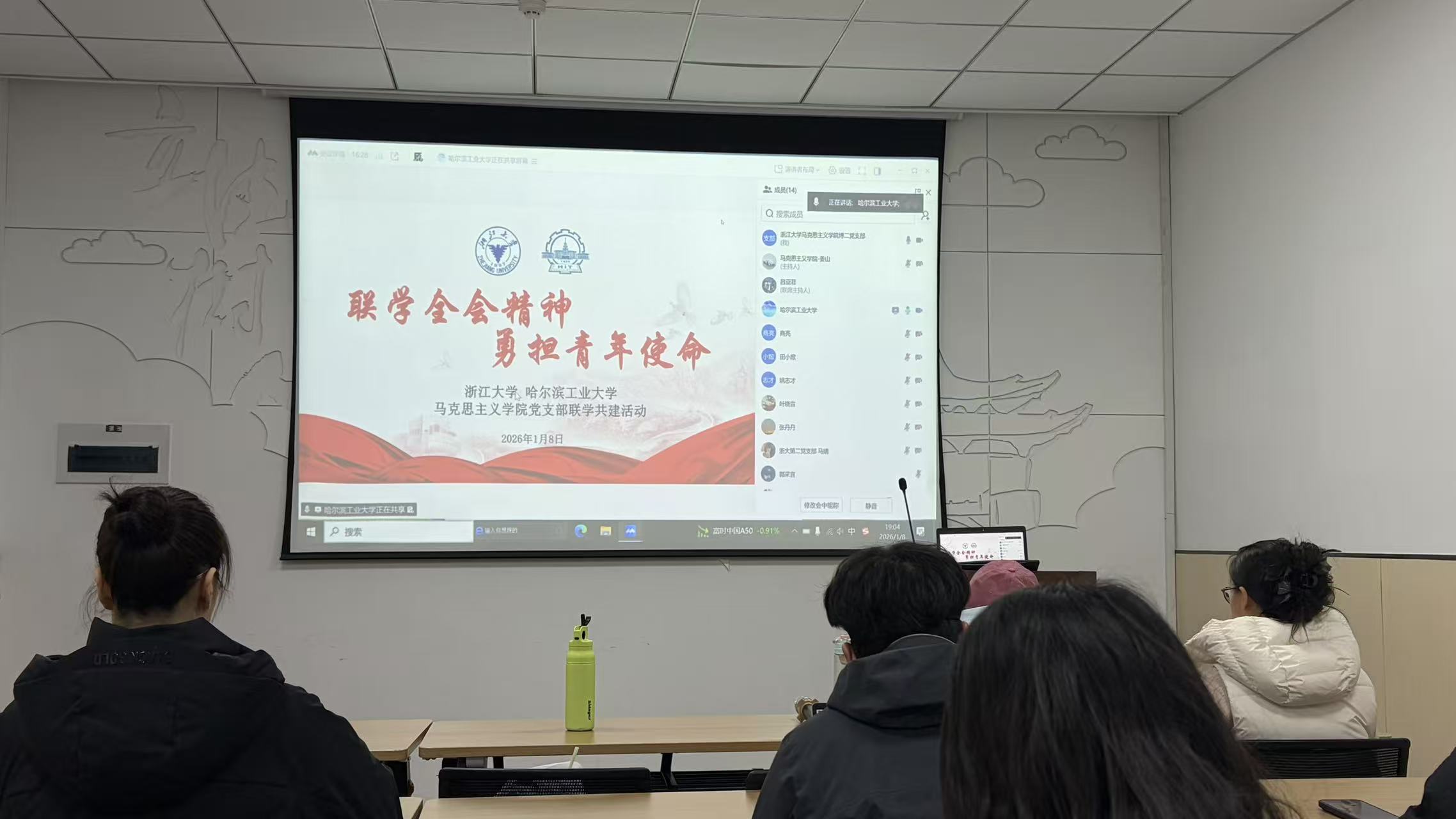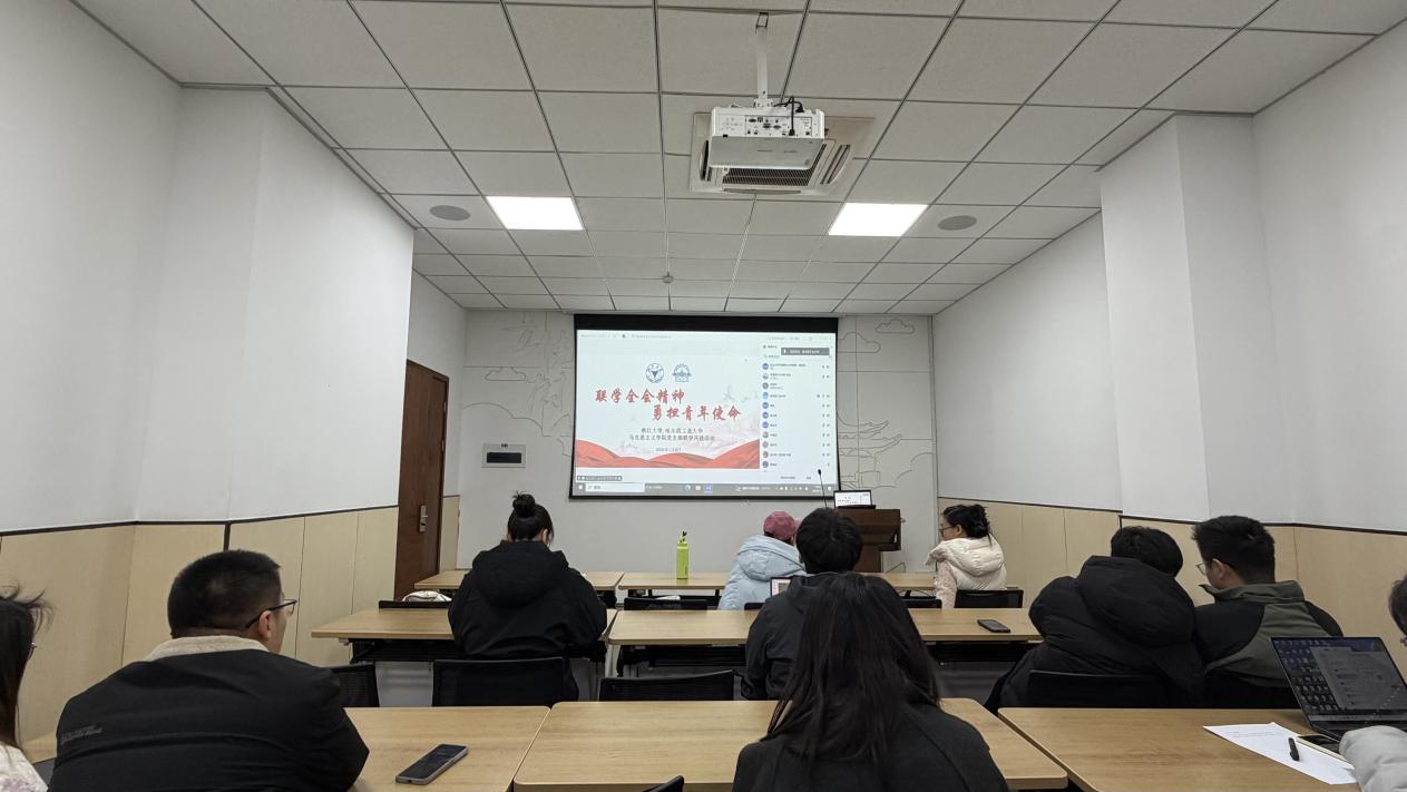 为深入学习贯彻党的二十届四中全会精神,加强高校马克思主义学院党支部间的交流合作,2026年1月8日晚,浙江大学马克思主义学院博士生第二党支部与哈尔滨工业大学马克思主义学院政青春宣讲团党支部以线上线下相结合的形式,联合举办“联学全会精神,勇担青年使命”主题联学共建活动。两校党支部成员齐聚云端,通过专题领学、研讨交流、总结展望等环节,共学共悟全会精神,共话青年使命担当。